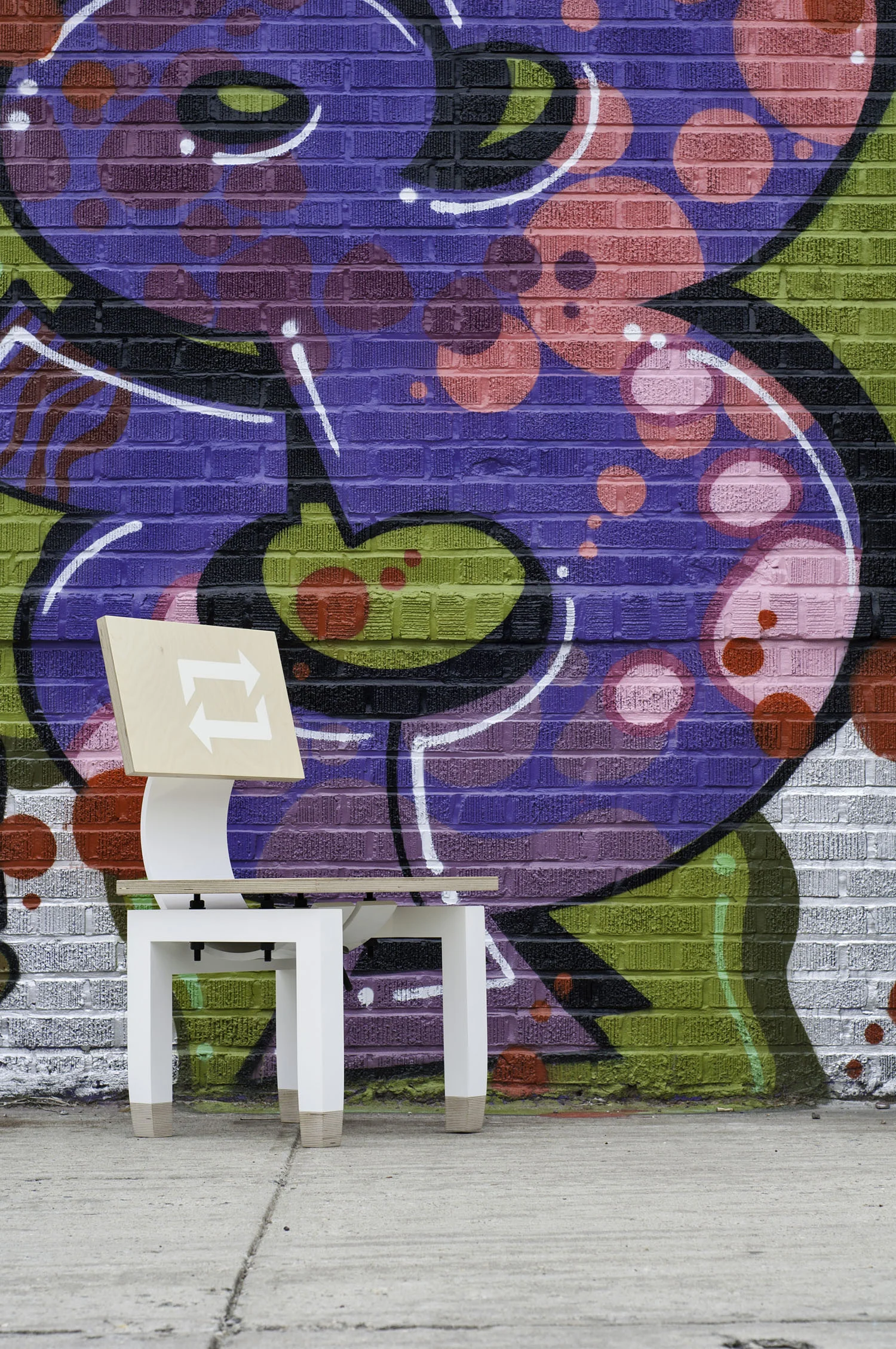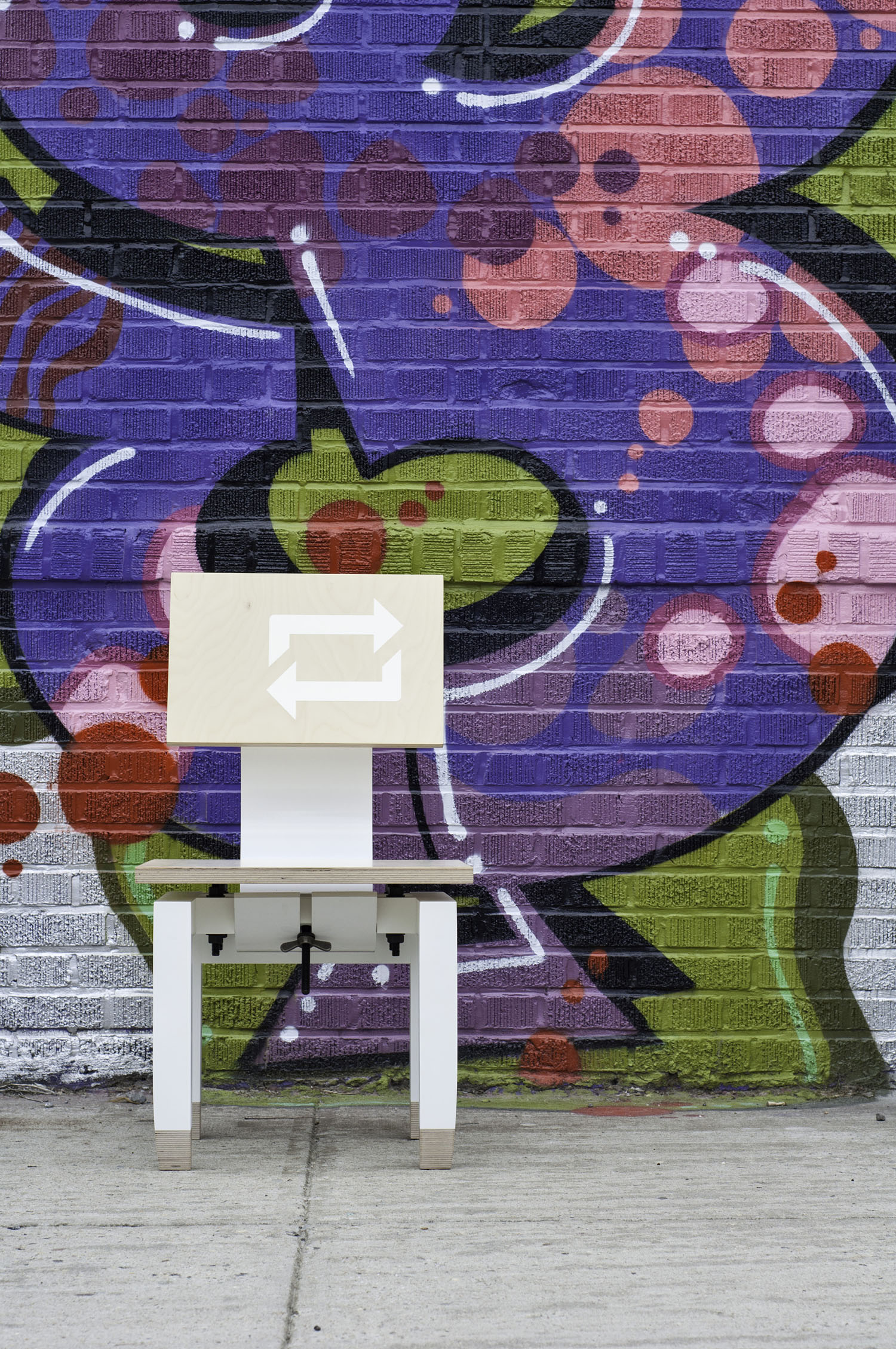 multi-ply and white pigmented hardwood, white powder-coated rolled aluminium 1/2 threaded rod, nuts, washers+ XL malleable iron wingnuts water-based clear-coat poly finish